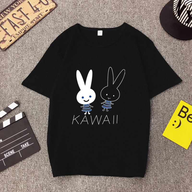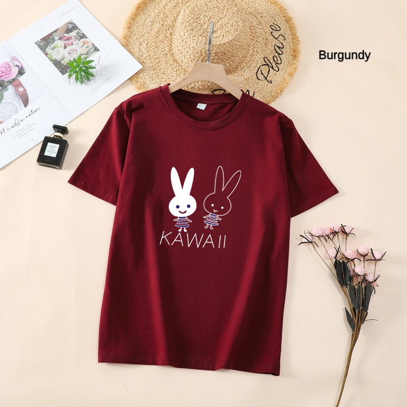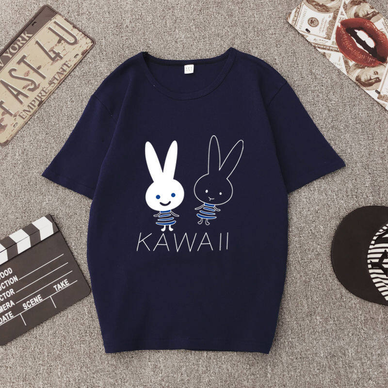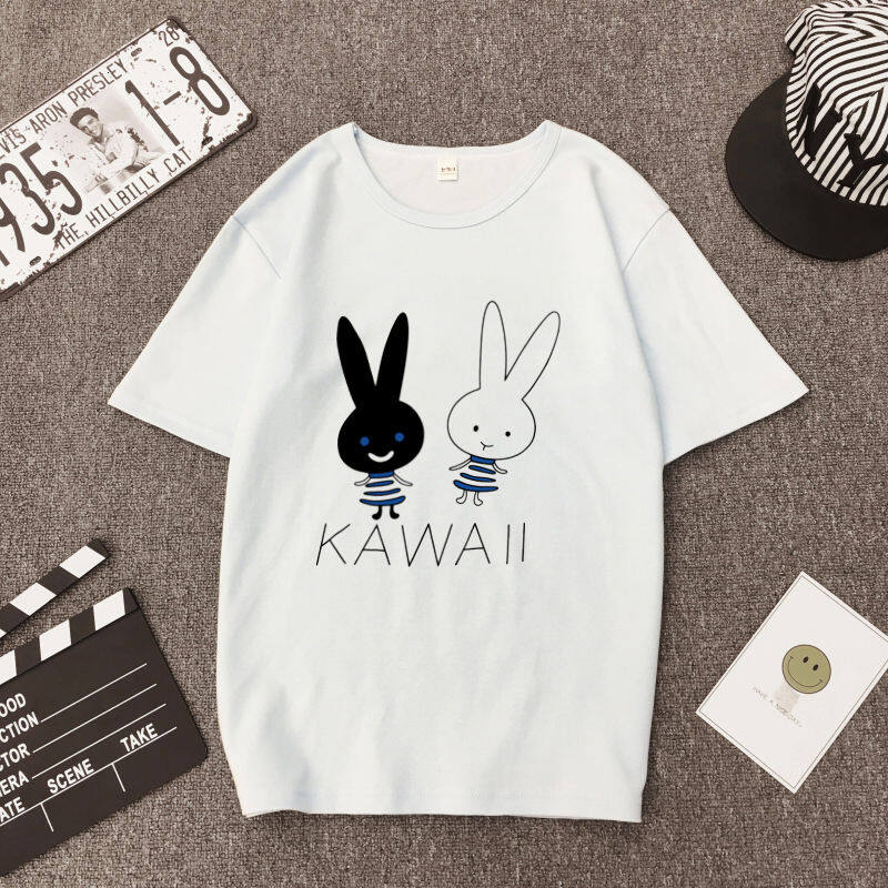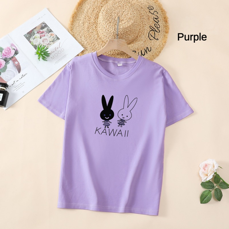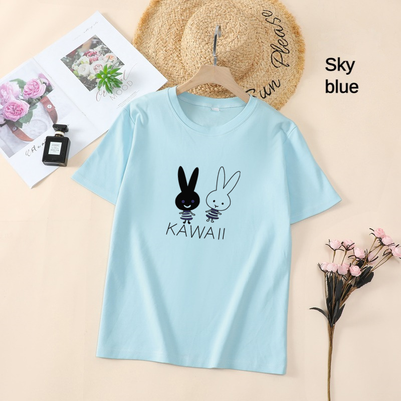White T Shirt Women Elegant Short Sleeve T-shirts Cartoon Rabbit Printing O-Neck T-shirt Lightweight Ladies T-shirts