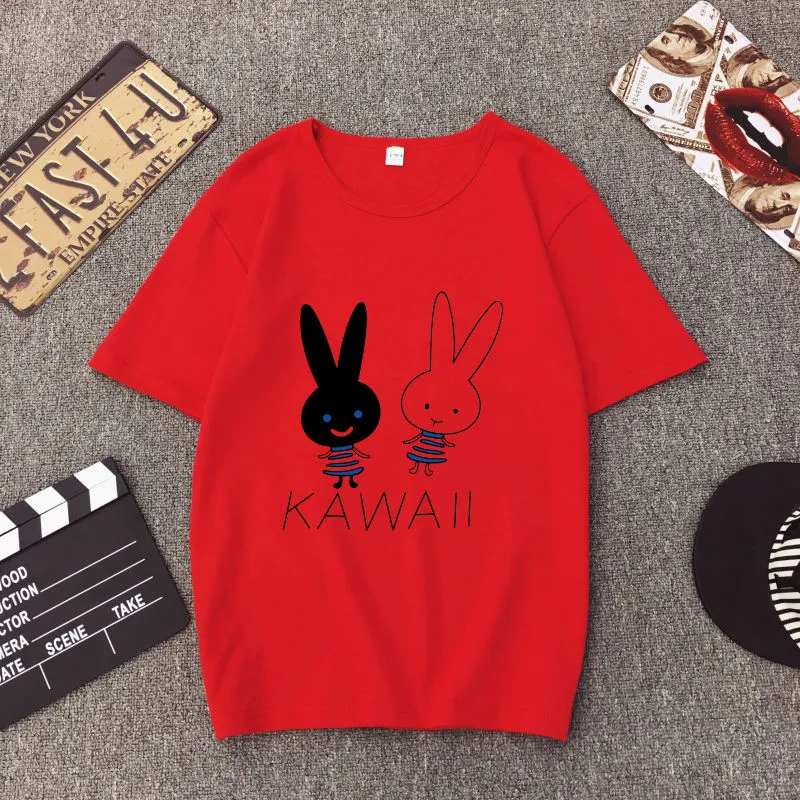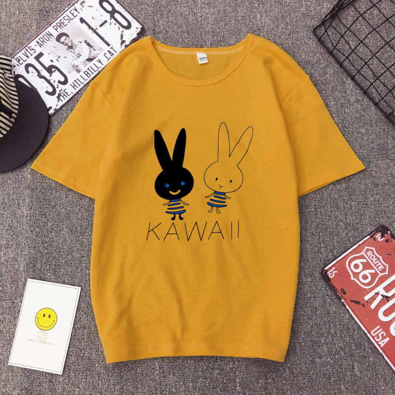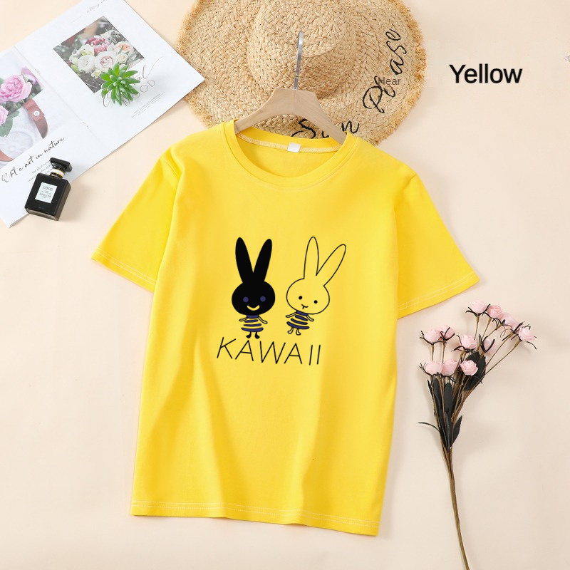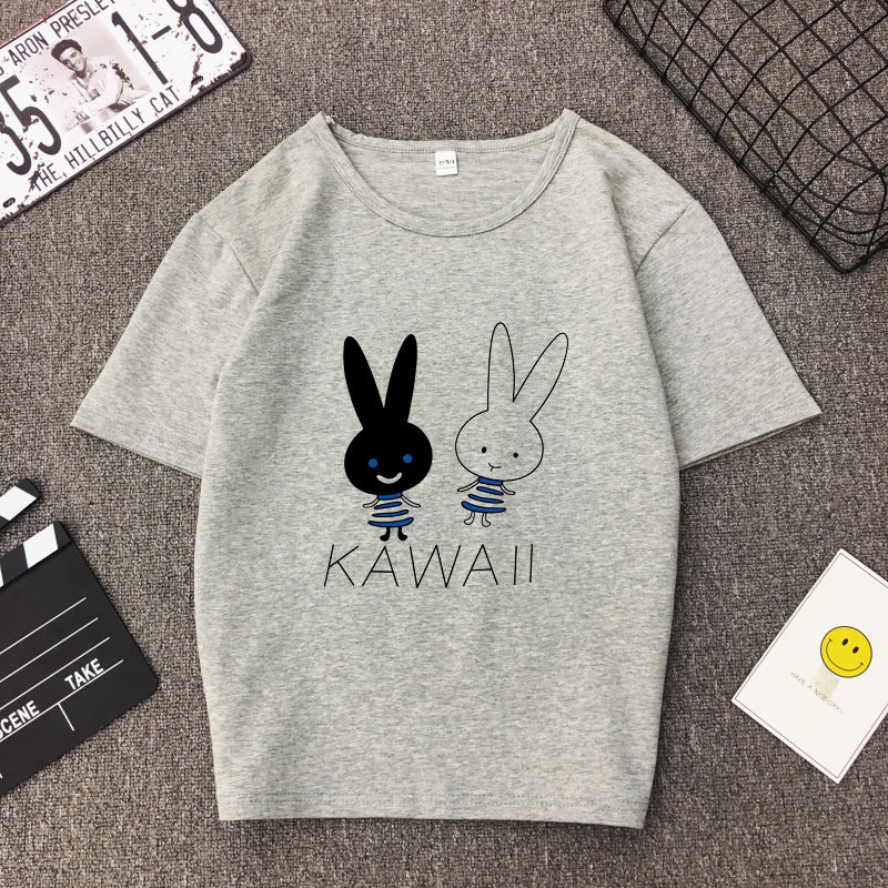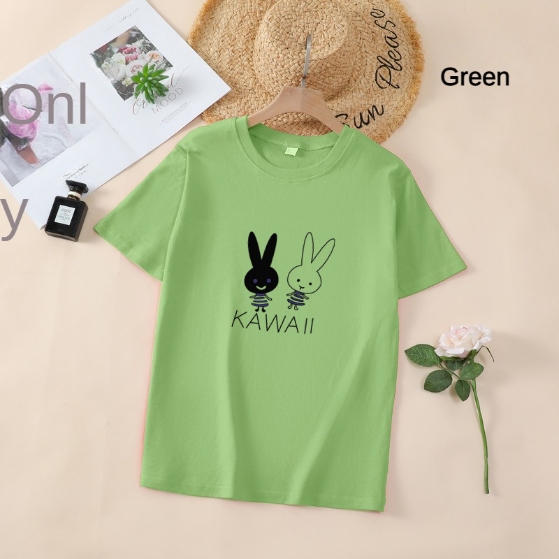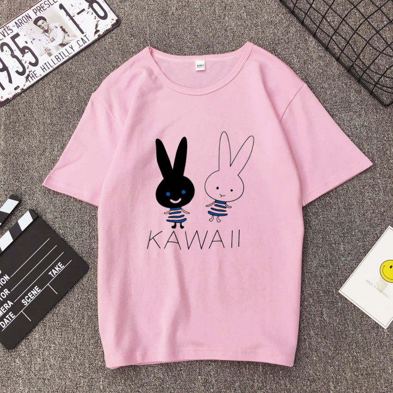 White T Shirt Women Elegant Short Sleeve T-shirts Cartoon Rabbit Printing O-Neck T-shirt Lightweight Ladies T-shirts