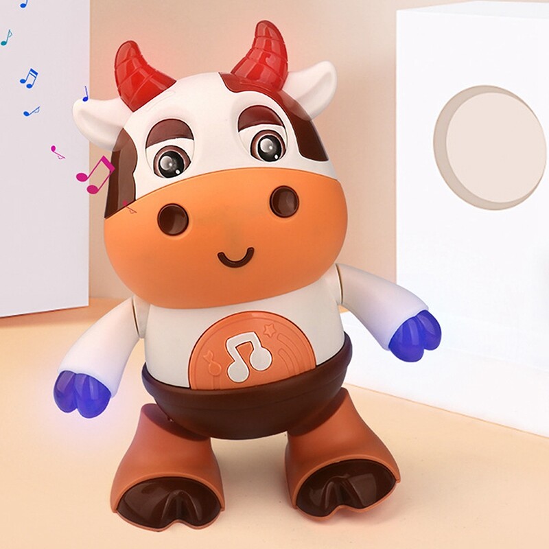 Cvurire【Ready!】Dancing Cow Musical Toys Educational Learning Toys Swinging Cow Robots Sound Light Dancing Niu Kids Gifts For 3 Months+ Baby