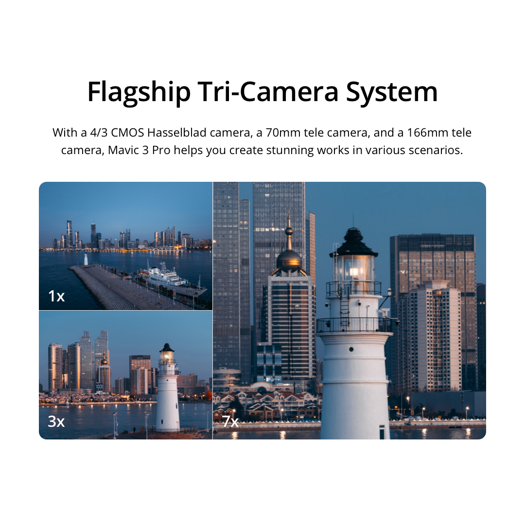 DJI Mavic 3 Pro - Camera Drone | Flagship Tri-Camera System | 4/3 CMOS Hasselblad Camera | 43-Min Max Flight Time | Omnidirectional Obstacle Sensing | 15km HD Video Transmission | Apple ProRes for Pr
