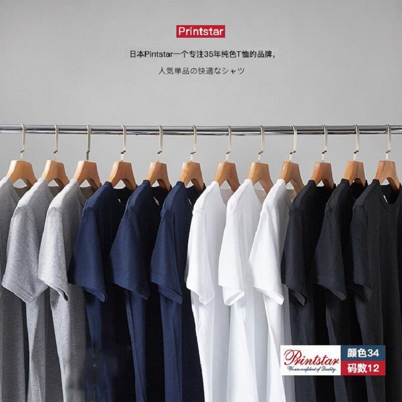 190G Printstar Pure Cotton Black and White Short-Sleeved T-shirt Men's and Women's Half-Sleeved Solid Color round Neck T-shirt Base Shirt