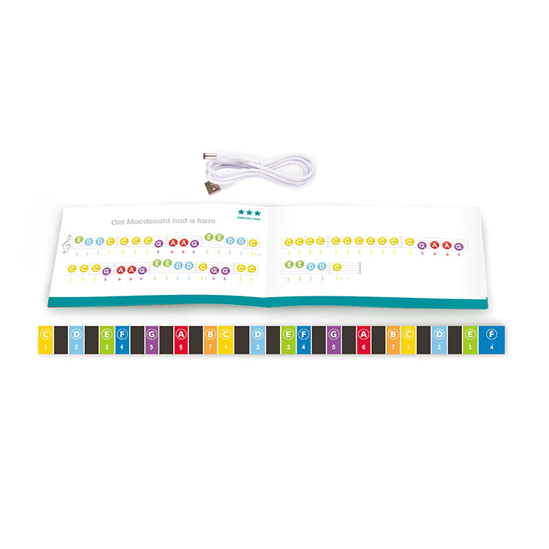 - YOUR MUSICAL TEACHER: This fantastic piano for little musicians features a removable color-note strip that fits behind the keys, guiding tiny fingers to the colored dots as per instructions in the music book, with its help your child can play a complete tune!
