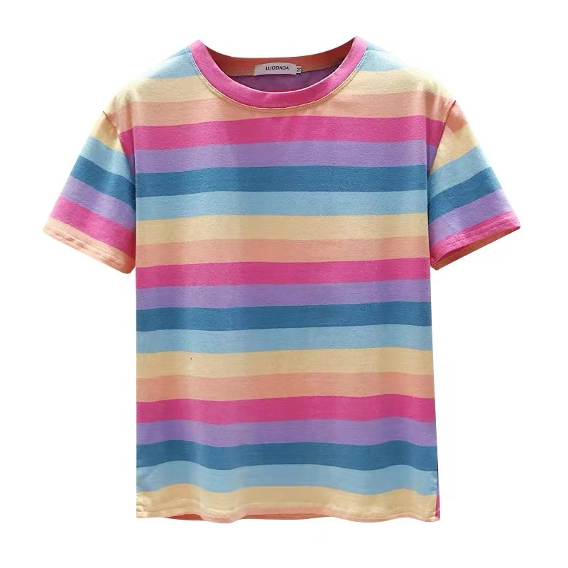 Super Popular Striped Korean Style Loose Round Neck Ins Short Sleeve T-shirt
