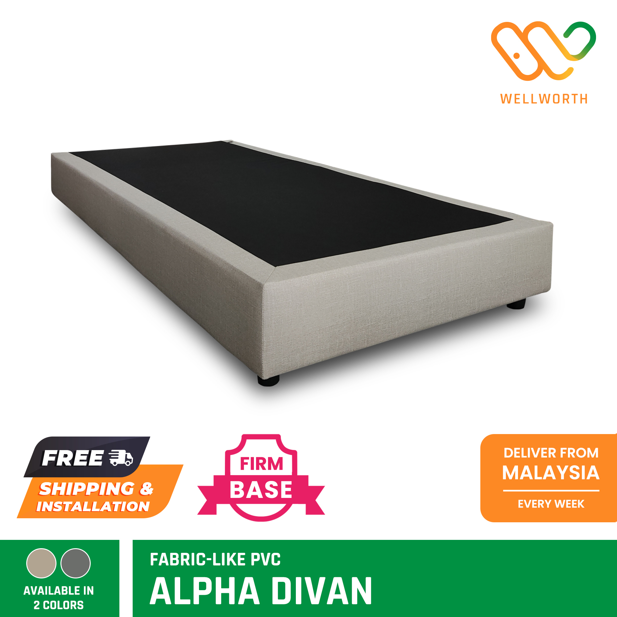ALPHA Divan, Fabric-Like PVC, Easy to Clean Firm Base, Available Sizes (King, Queen, Super Single, Single)